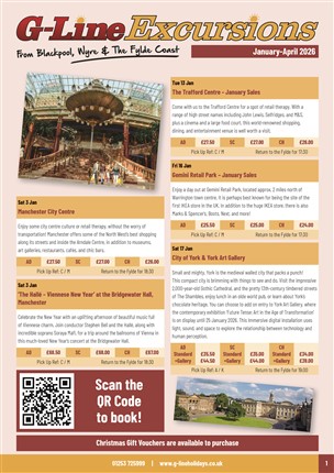 Join us for an exciting day out, with convenenient pick up points across Blackpool, Wyre & The Fylde